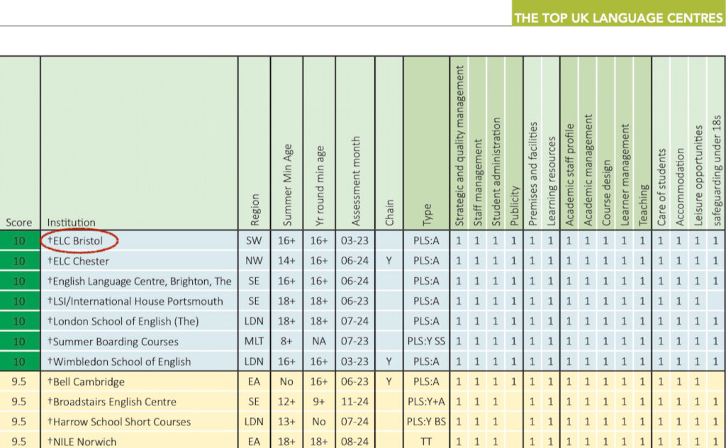 Wish us good luck for our next full inspection which will take place in 2027! We hope that ELC Bristol will still be at the top of the EL Gazette UK language centre rankings 🙏